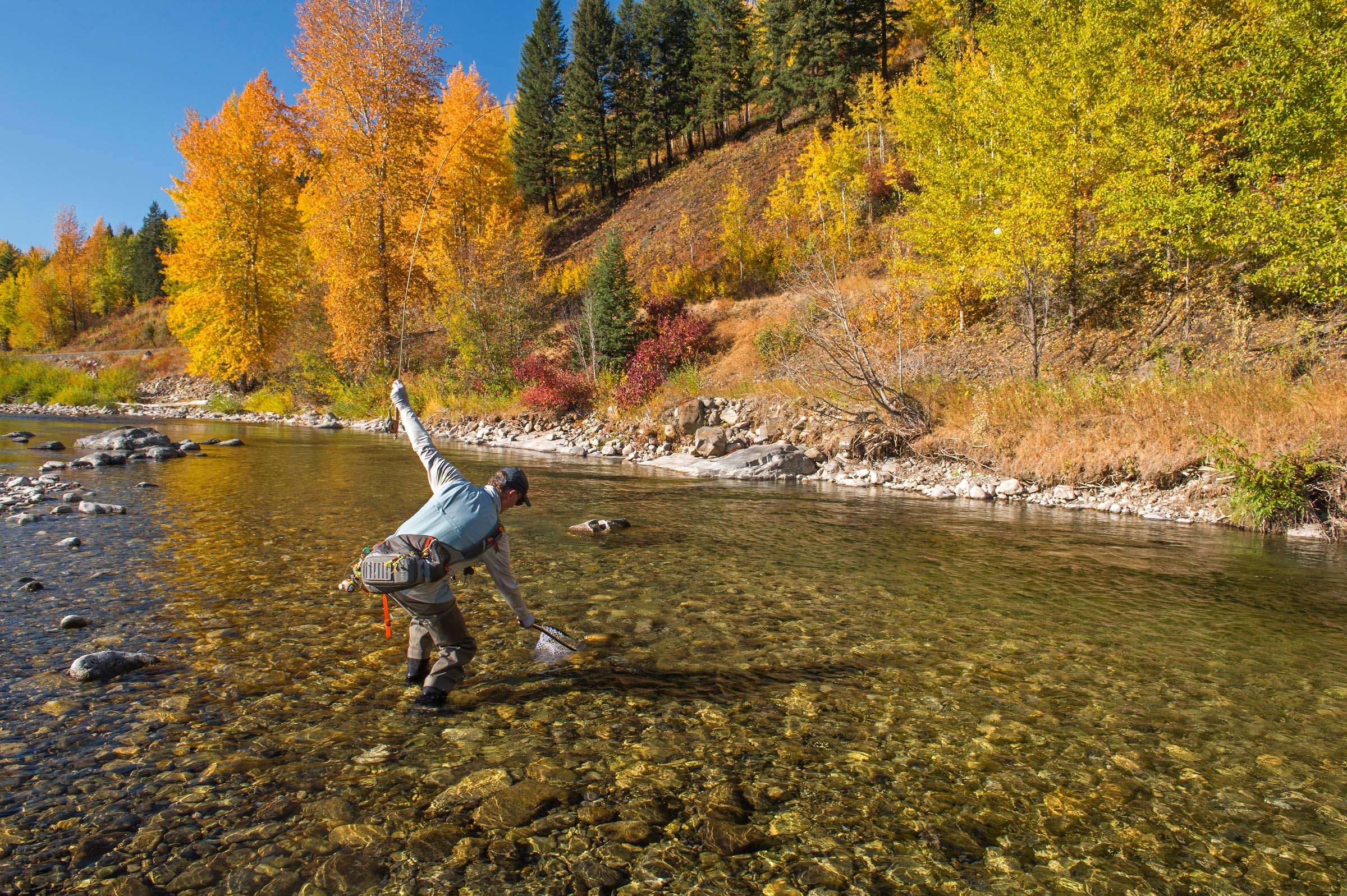 Imagine, just for a moment, that you are standing in the middle of a crystal clear freestone creek, surrounded on all sides by the Rocky Mountains. The air is a temperature that can only be described as autumn perfection. The sky is the kind of blue that no one back home will believe when they see your pictures. And there is this perfect harmony of sound that blends moving water and wind rustled autumn leaves with the faint whisper of your fly line arcing through the air, before unfolding and softly landing on the stream’s surface.