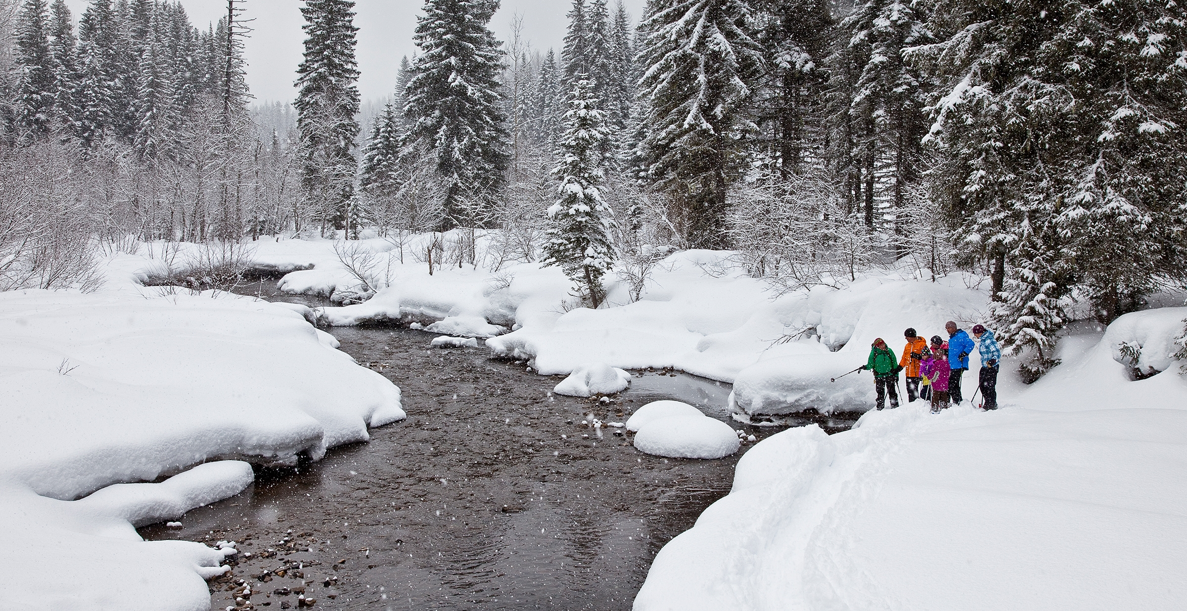 With the right timing and a bit of luck you can catch a pink sunset over the Elk River. Rent a fatbike, crosscountry ski, or snowshoe from several rental shops in town or on the mountain, and head over to one of the town trails with gorgeous views - the Great Northern Trail, Dogwood Trail or James White Park trail.